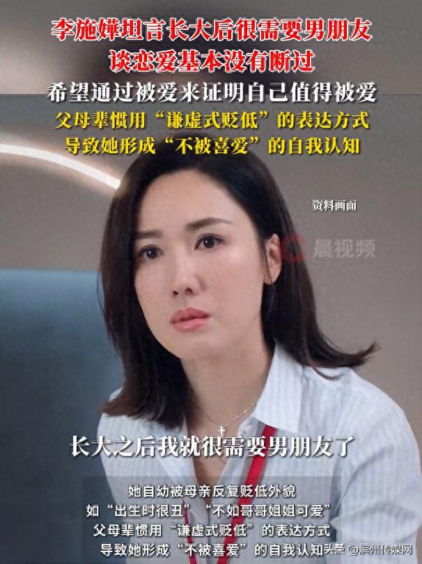 10月29日,李施嬅通过综艺《再见爱人5》,坦白自己因原生家庭缺爱而长期陷入融券通,“通过恋爱证明自我价值”。