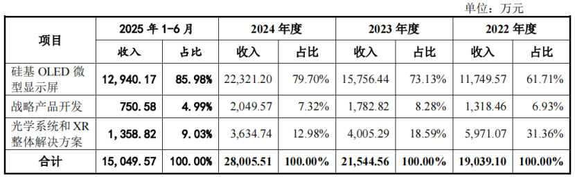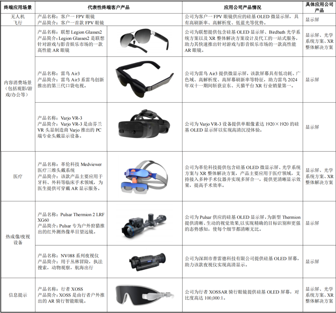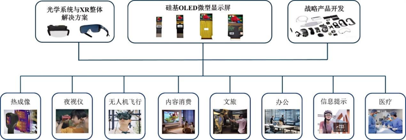 公司主要产品为硅基OLED微型显示屏,并为客户提供包括战略产品开发、光学系统与XR整体解决方案等增值服务。