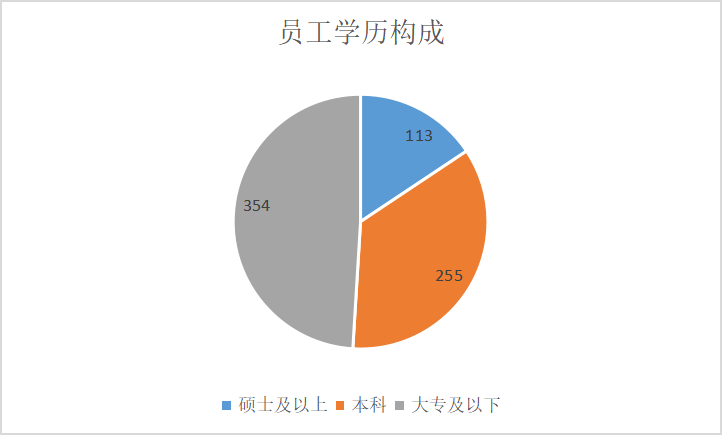 截至2025年6月30日,公司学历构成的具体情况如下:硕士及以上113人,占比15.65%;本科255人,占比35.32%;大专及以下354人,占比49.03%。